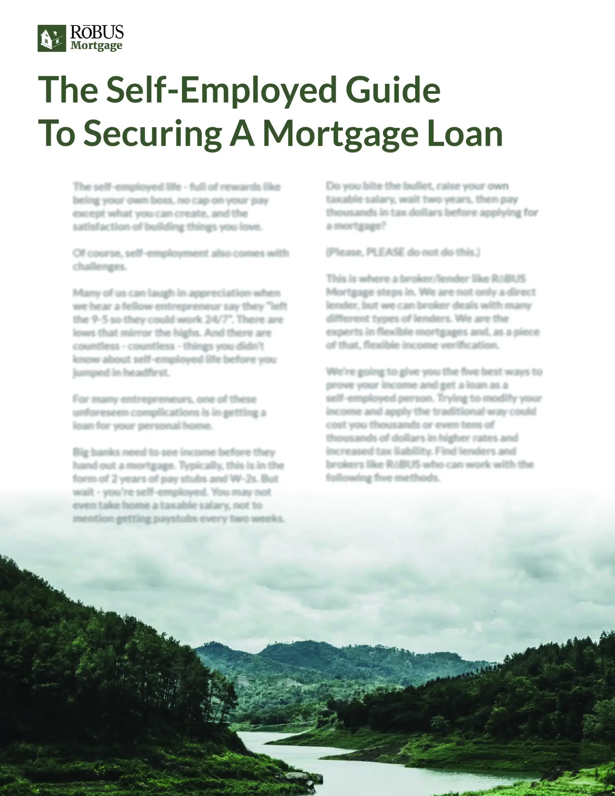 RōBUS Mortgage are the experts on self-employment and mortgages. From contractor gig work, to C-level founders, the strategies outlined in this document can help.